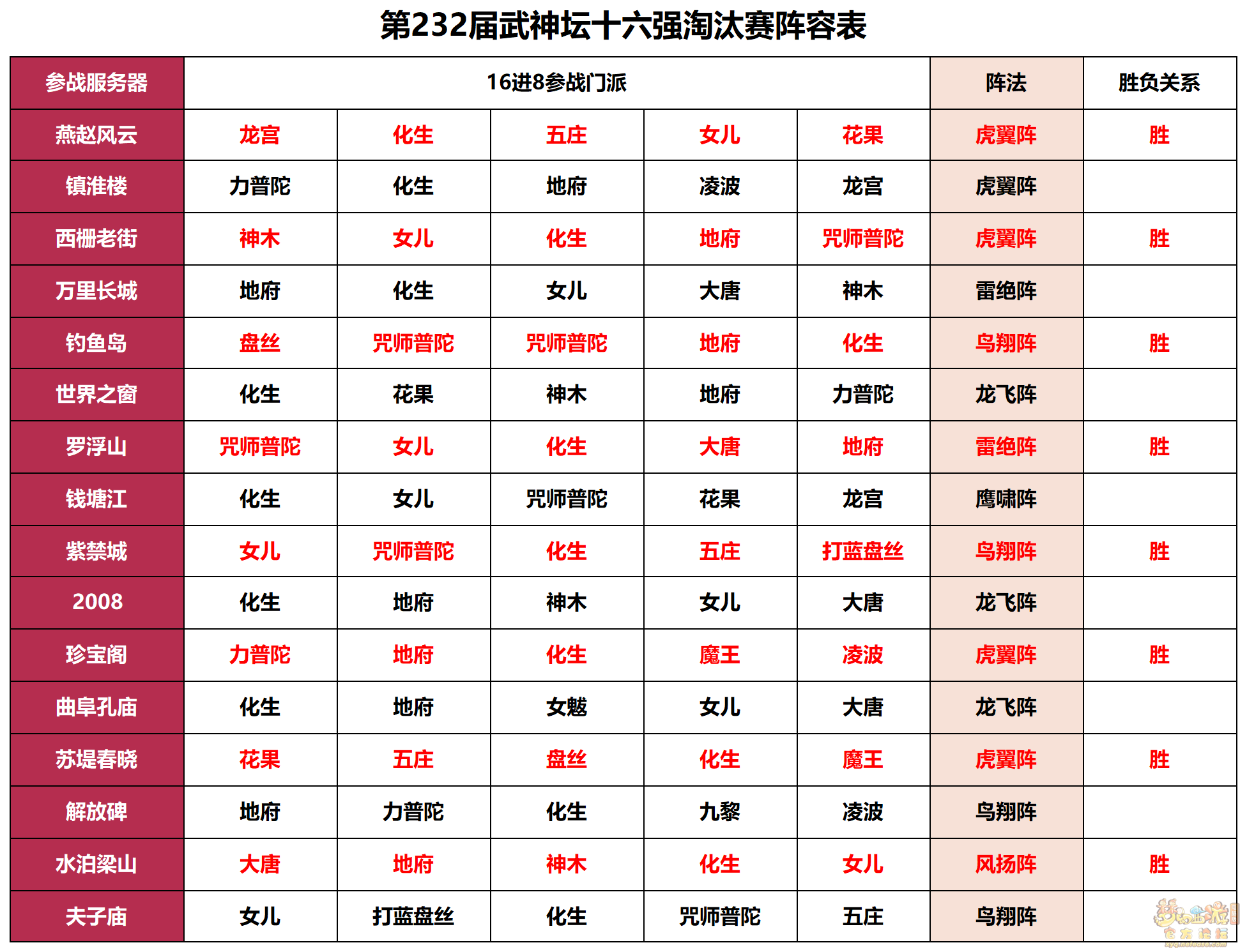 ![]() [h1]第232届武神坛总结:进攻才是获胜关键![/h1] 在第232届武神坛决赛中,苏堤春晓靠着灵活的应变能力和战术调整能力,靠着“力女儿、花果、魔王”三攻成功击败钓鱼岛,拿下了建队以来的首个二连冠。除此之外,在本届武神坛中还出现了不少让人眼前一亮的战术。下面,就给大家简单地做个总结吧! [h2]咒师、九黎阵容基本绝迹[/h2] ![]() 从本届武神坛十六强淘汰赛情况来看,各大服务器在本次门派调整之后,出现了“颠覆性”的阵容变动。可以说,此前爆火的“咒师普陀、九黎城”体系16强比赛中基本处于无人问津状态,反而是以“花果、魔王”为输出核心的“双封面伤”阵容和以“花果、力普陀、魔王寨”为输出核心的“三攻”阵容占据了主流。 ![]() 比如,在武神坛16进8的比赛中,珍宝阁服务器就靠着一手“力普陀、魔王、凌波城”组成的三攻阵容,硬生生打穿曲阜孔庙防线,仅用30回合就拿到了决定胜负的优势。而且,随着比赛的推进,越来越多的服务器开始重视并运用三攻阵容,这一改变也让本届武神坛的比赛节奏明显加快,观赏性大大提高。 [h2]花果、龙宫重登高端舞台[/h2] 在本届武神坛积分赛和淘汰赛阶段,不少队伍在物理输出核心选择了“花果山”,在法系输出核心上选择了“龙宫”,均打出了非常不错的效果。 ![]() 比如,在本届武神坛16进8的比赛中,燕赵风云就采用了以“花果、龙宫”为输出核心的面伤阵容。比赛中,燕赵风云凭借花果山强大的物理爆发和龙宫稳定的法系面伤,不断压制对手血线,打出了较大的优势。只能说,此次门派调整后,“斗战真神”流派的花果山不仅爆发力较之前提升了许多,还能依靠“猴子猴孙”打出一定的面伤效果,能更好地与龙宫、魔王等传统法系门派进行阵容搭配。当这两者结合在一起时,无论是清宠还是压制对手血量,都有非常优异的表现,成为本届武神坛中一道耀眼的风景线。 [h2]阵容预判依然是核心竞争力[/h2] ![]() 在本届武神坛8进4的对决中,西栅老街在硬件弱于对手的情况下,拿出了一套“花果、化生、神木、五庄、女儿”组成的“双封面伤”阵容,而紫禁城则由于阵容预判失误,导致他们在变身卡方面选择失误,丢掉了速度优势,令西栅老街的五庄观可以毫无顾忌地给双输出点加上天地同寿,轻松规避紫禁城的控制节奏,成功拿下比赛。 ![]() 在本届武神坛决赛中,钓鱼岛以为禁了普陀就能封锁苏堤春晓的三攻阵容,所以在变身卡选择上用了三张超级飞廉卡抢速度,导致苏堤春晓的力女儿在基本没有BUFF加成的情况下,依然能打出4000+左右的面伤,令其血线压力倍增。由此可见,在武神坛这样高水平的赛事中,阵容预判依然是获胜的关键。精准的阵容预判,不仅能让队伍在比赛开始前就占据先机,还能通过赛前制定战术策略滚起雪球。不过,一旦预判失误,就可能像紫禁城和钓鱼岛那样,陷入被动挨打的局面。 [h2]小结[/h2] 总的来说,本届武神坛的比赛精彩纷呈,各大服务器在阵容选择和战术运用上展现出了极高的灵活性和创新性。三攻阵容的崛起,花果、龙宫等门派的重新登场,都为比赛增添了诸多看点。不过,要想在武神坛的赛场上笑到最后,还需根据对手实际情况,及时调整战术打法,才能更好地应对各种突发状况,从而避免因阵容预判失误导致的被动挨打局面。 |