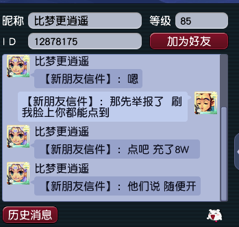 服务器:无与伦比 名字:比梦更逍遥 数字ID:12878175这种承认开科技的 不封 还怎么玩 每天8小时 封2只 怎么玩? 反正我加了好友 看你们作为