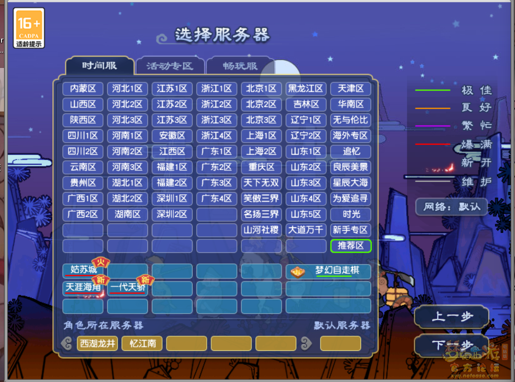 青花瓷测试区 周二维护后也是卡在这个界面上不去 昨天能登陆了 今天刚上又卡在选区界面上不去了