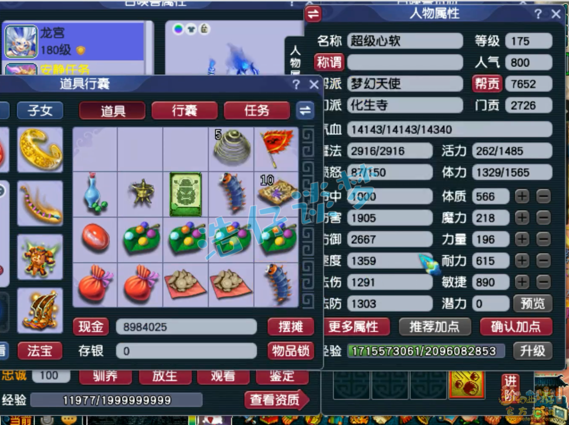 175级化生寺打符之后的面板属性,14340的气血,2667的防御,杀难度任务完全够用了。