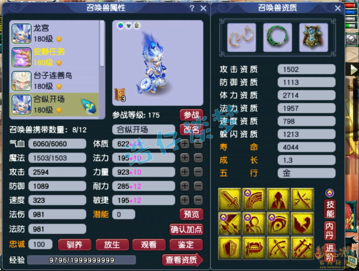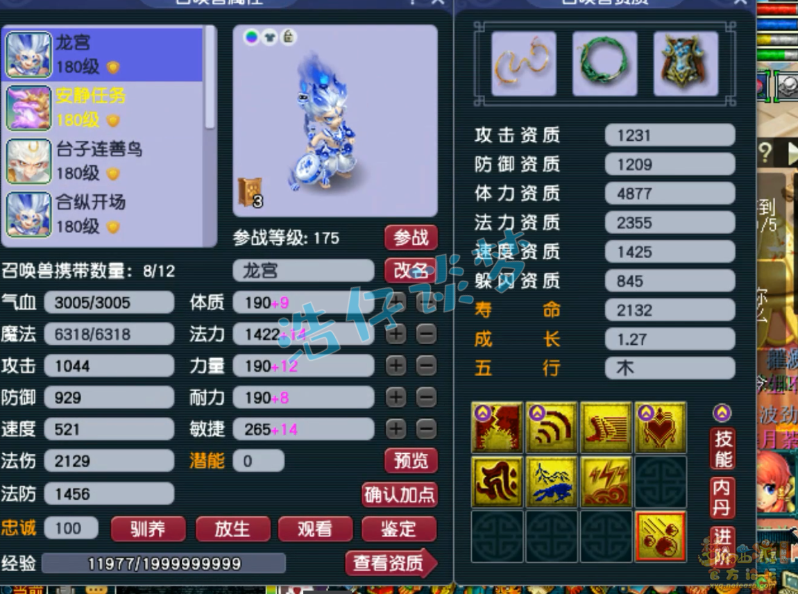 11技能高连苍鸾怒击自在心猿,也是一只4赐福的宝宝。