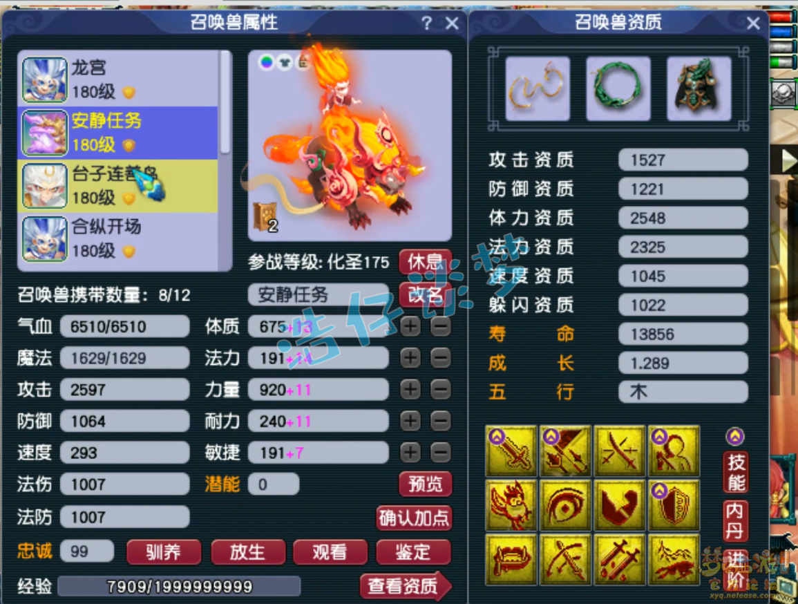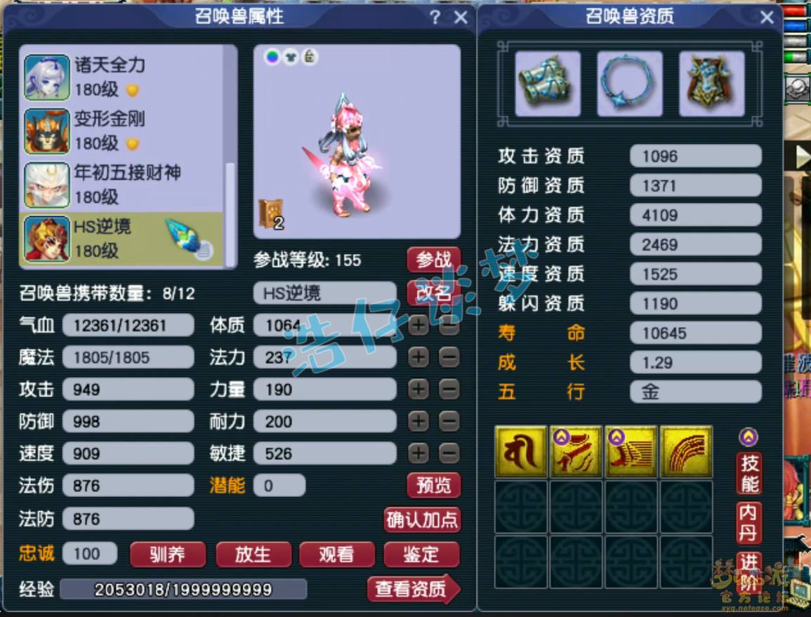 这是一只13技能的高连血攻童子,成长1.3非常不错,同样赐福了4个超级技能。