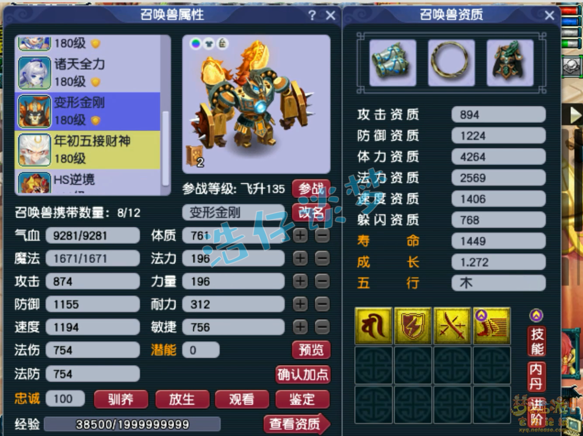 还有一只4技能净台配速血宠修罗傀儡鬼,套装带的是高神。