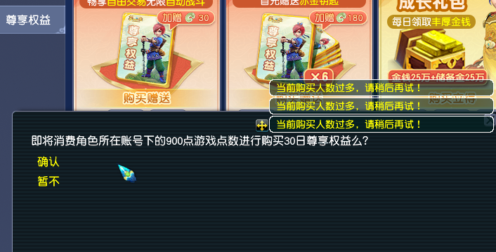 相关特权可购买数量有限,铁子这面将您的建议和需求进一步提交,具体的特权售卖情况少侠可以留意下畅玩服的官方公告或游戏内的系统提示哈。