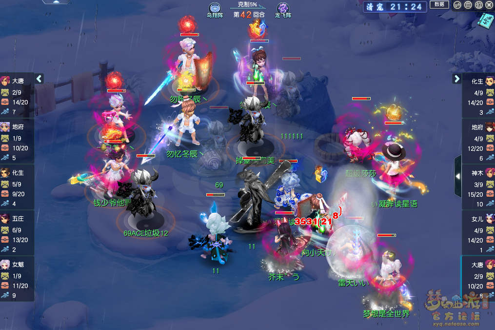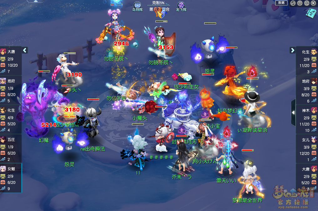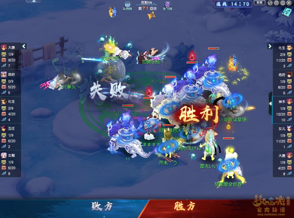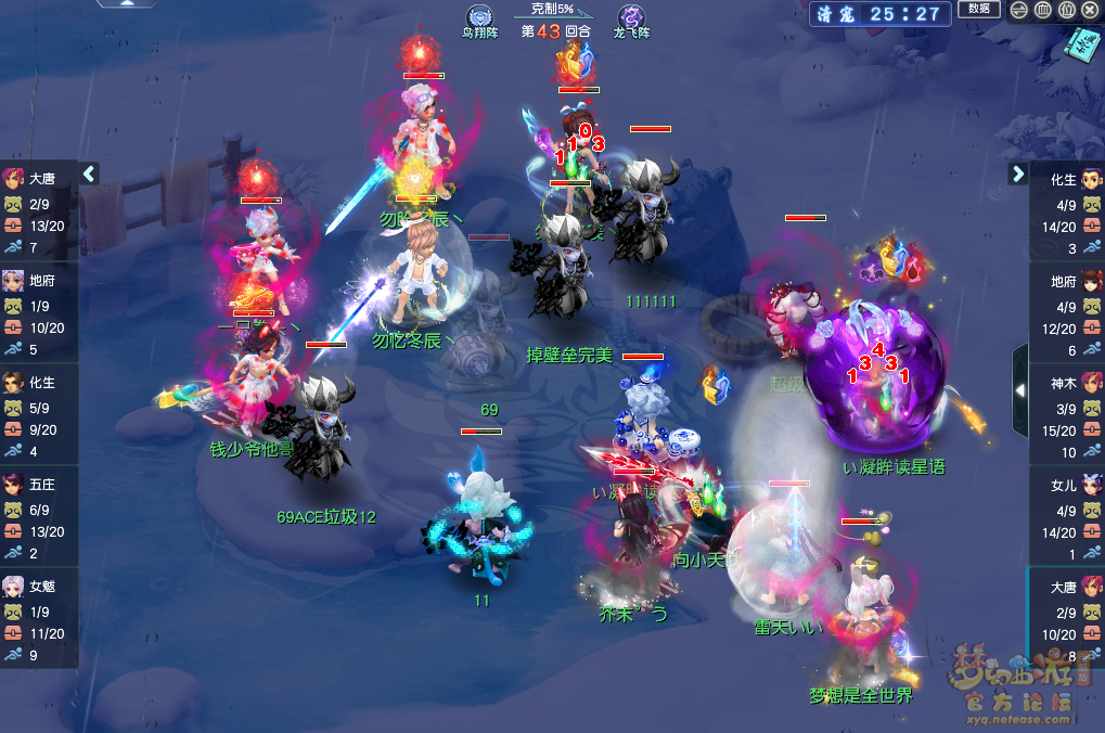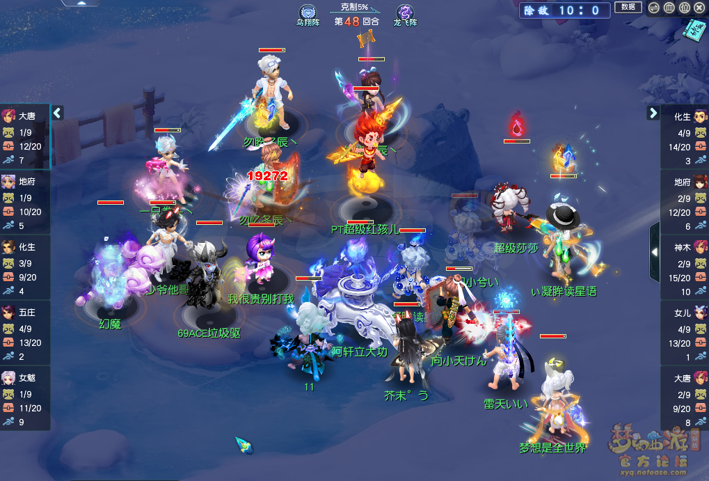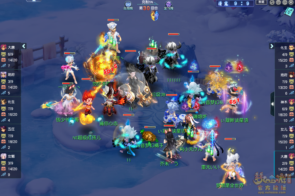 观战方【西栅老街】:女儿村、化生寺、阴曹地府、大唐官府、神木林,国标阵容。