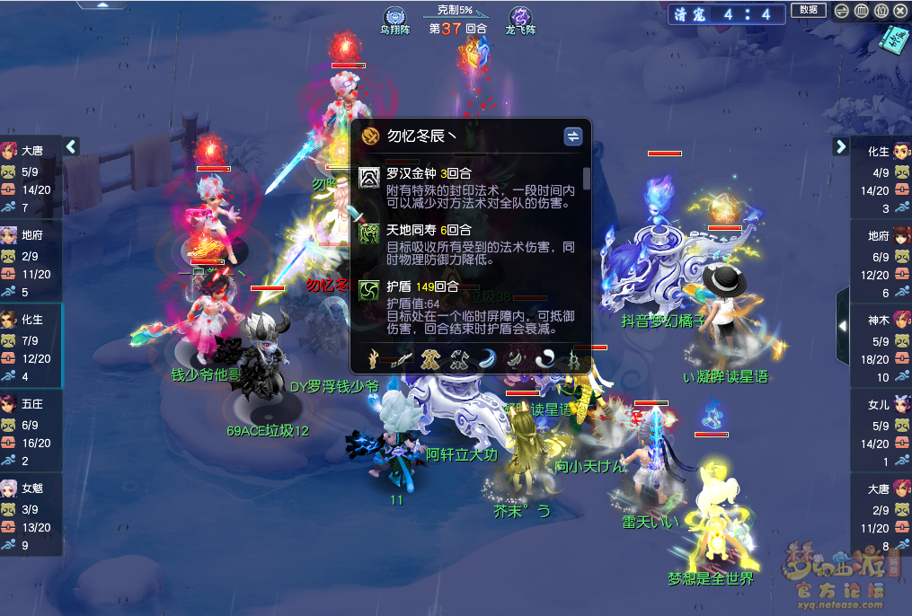 【罗浮山】的回应也十分果断,迅速祭起罗汉金钟+苍白纸人,其中罗汉金钟更是没有一回合中断过,用无缝衔接的防御扛过减员期。