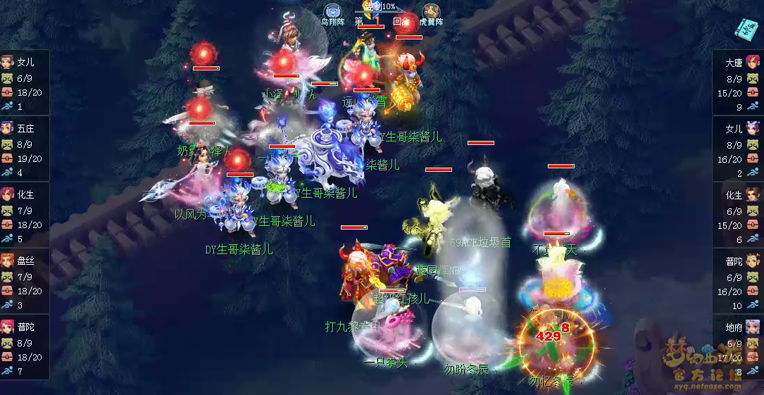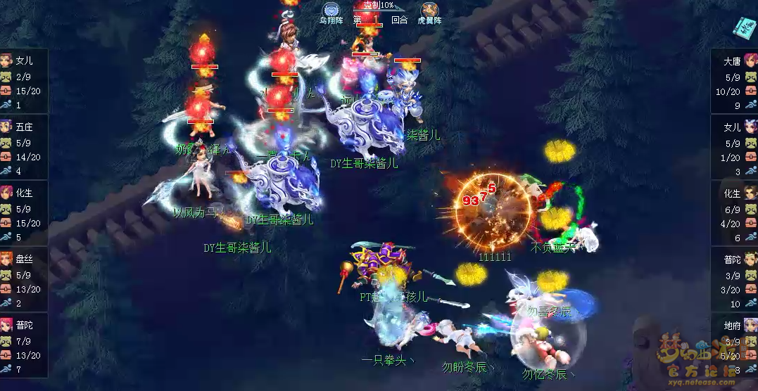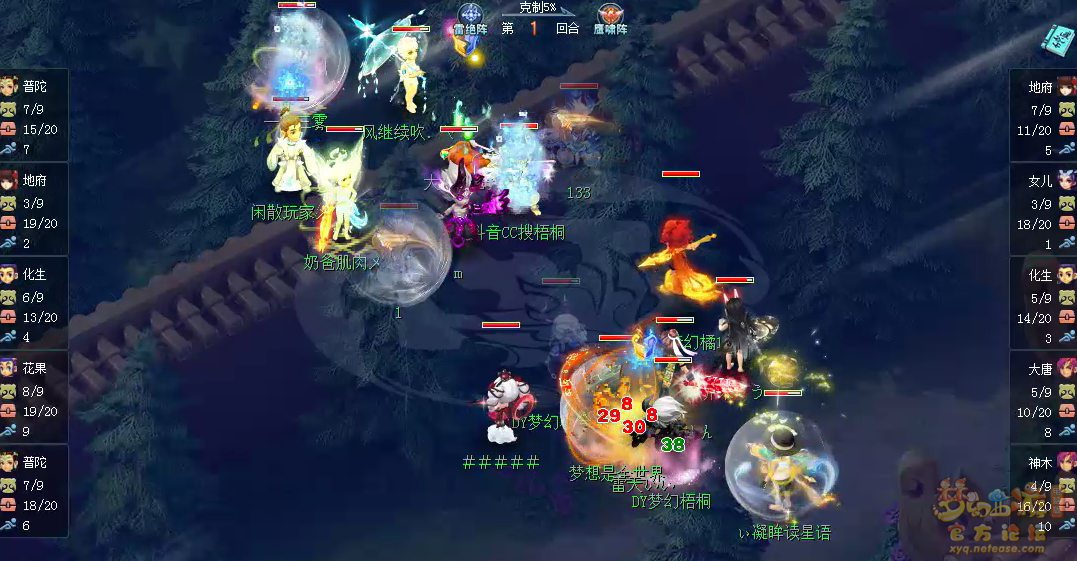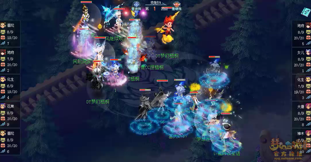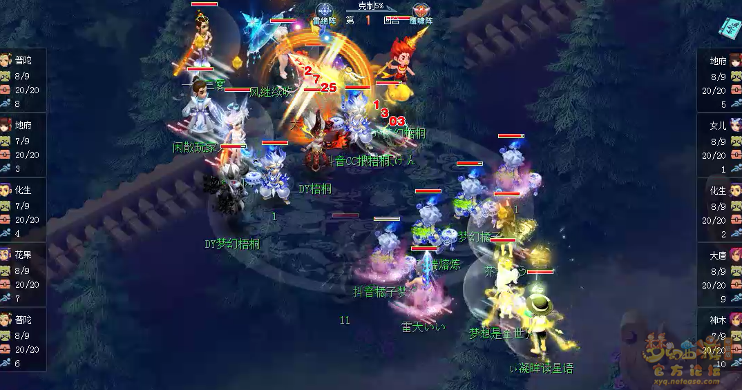 观战方【西栅老街】:女儿村、化生寺、阴曹地府、大唐官府、神木林,国标阵容。