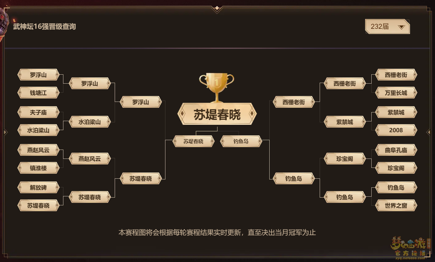 (第232届武神坛对阵情况)