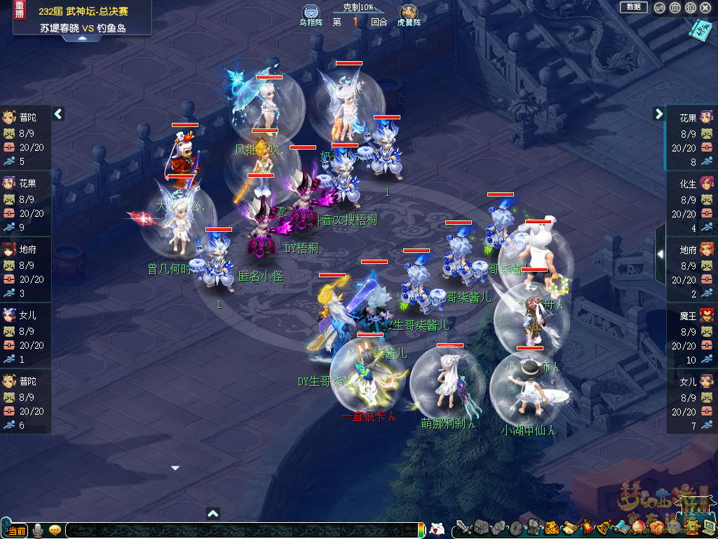 比赛第9回合,钓鱼岛绝命一搏,成功压倒苏堤春晓力女儿,打断了其输出节奏。不过,由于钓鱼岛场上只剩下2个人物单位和2只召唤兽,依然很难组织起有效的反击。