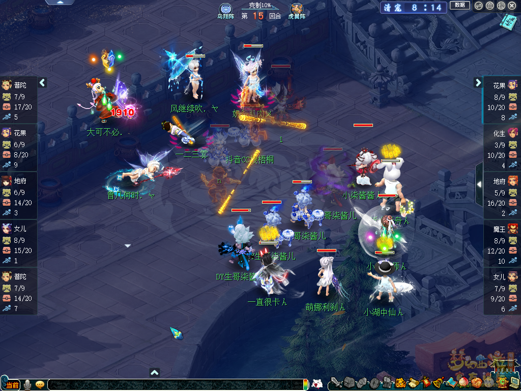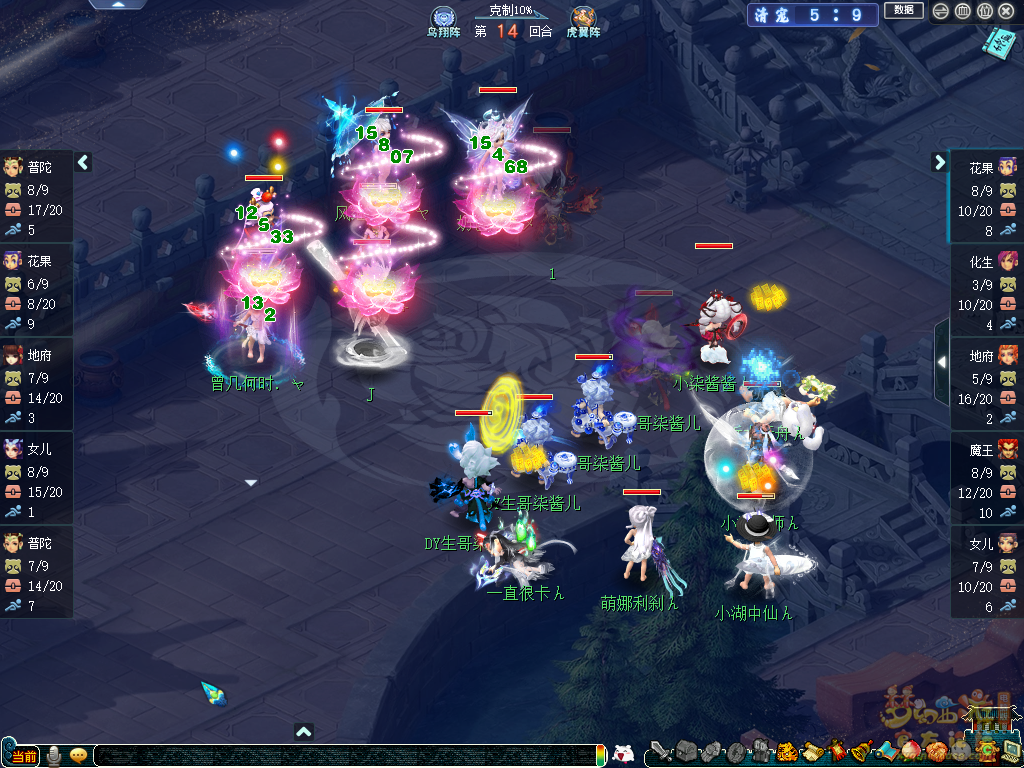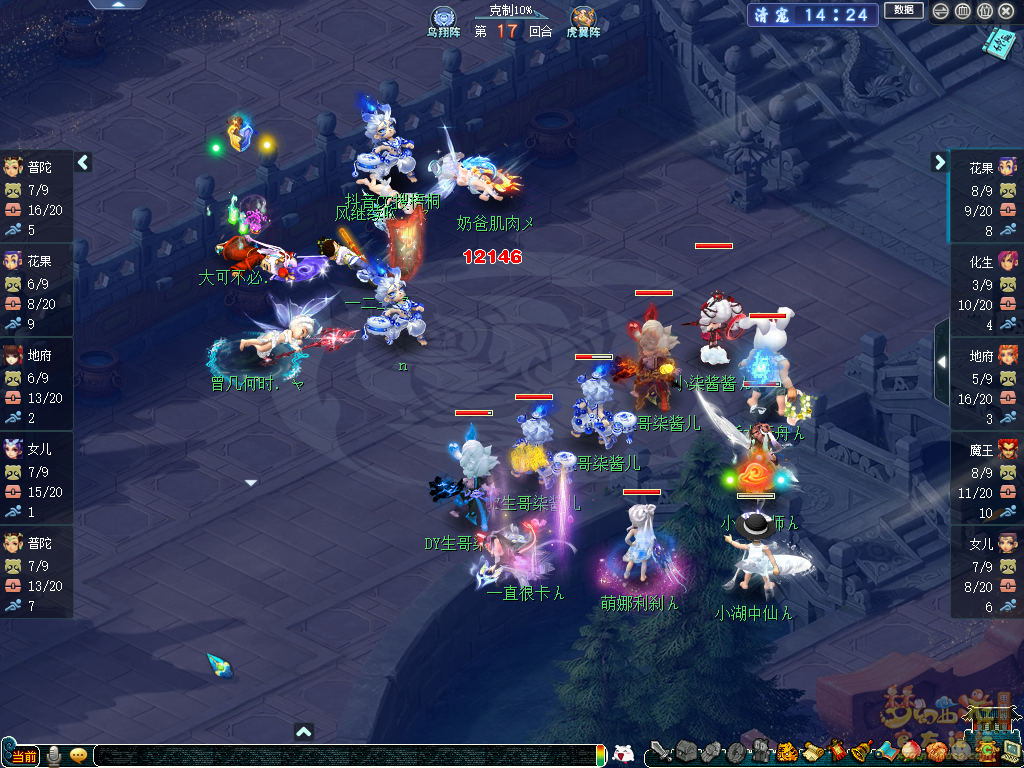 比赛第14回合,钓鱼岛靠着龟速宠拉女儿的操作成功慈航。但由于场上单位较少、缺少恢复门派等缘故,依然无法维持战线。