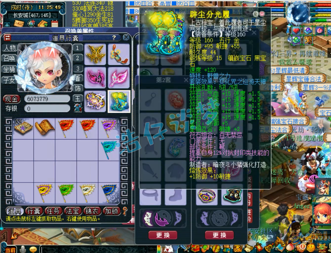 160级带野兽之力的变化咒之巡游天神套鞋子,打了15锻黑宝石。