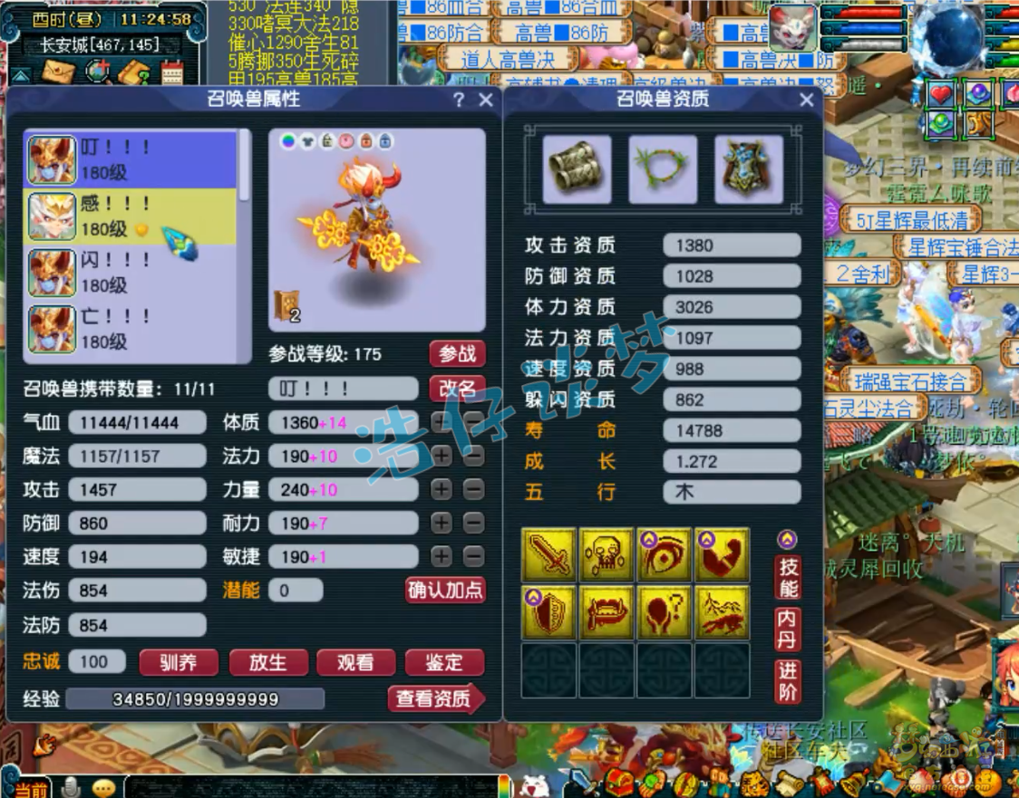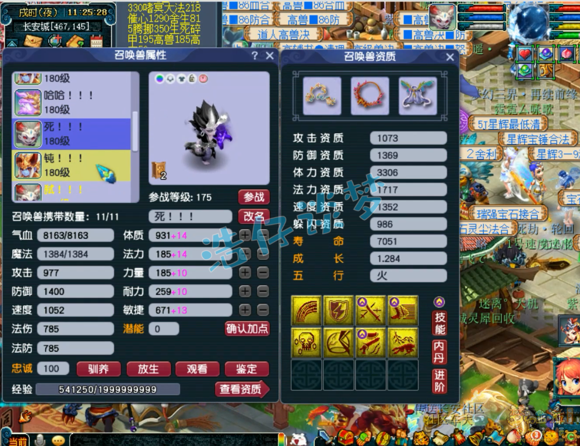 8技能死亡血攻童子,赐福了3个超级技能,用来针对九黎城的宝宝,资质再养一养就完美了。