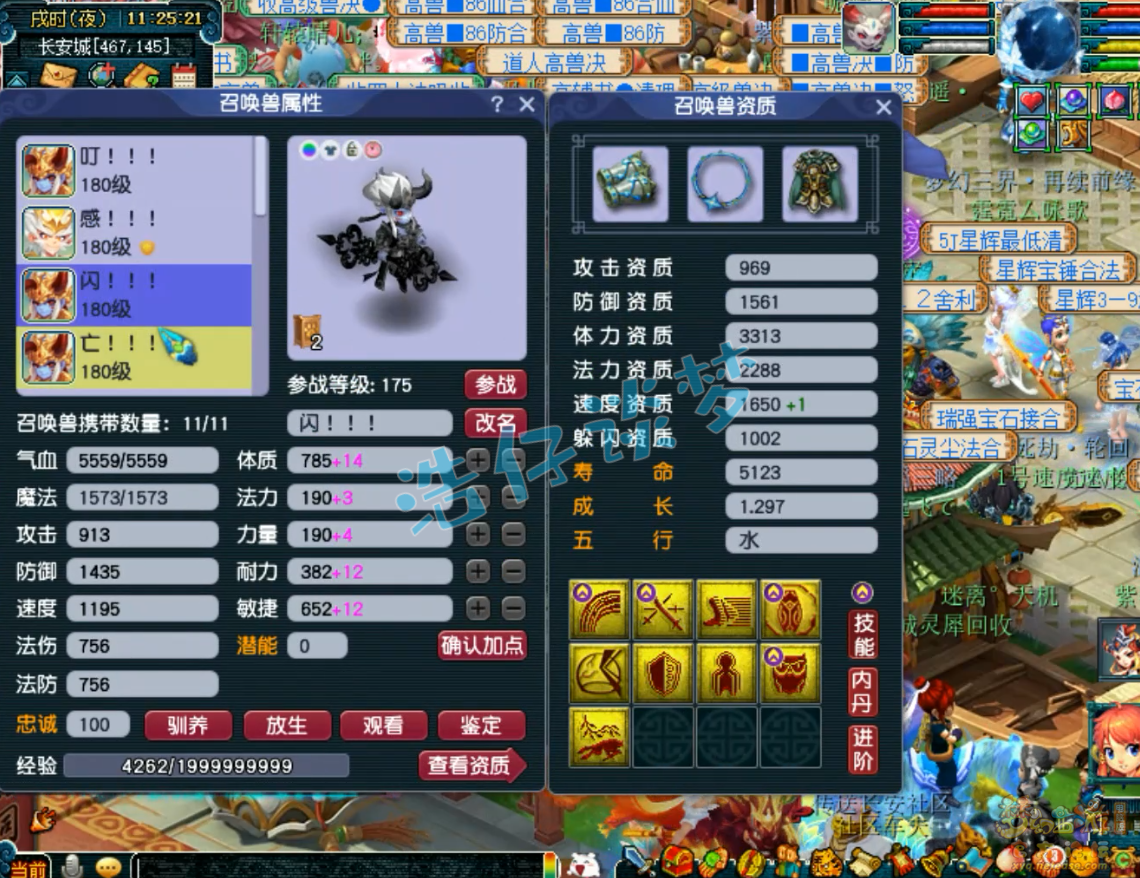 9技能凝光炼彩千速血宠童子,赐福了4个超级技能,速度资质养出了加号。
