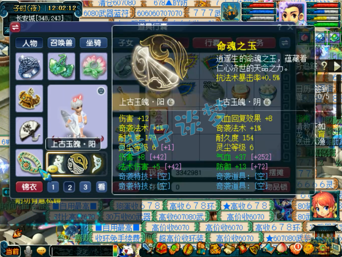 命魂之玉前排选择了伤害法伤,后排选择了气血防御,全部打了6锻五色灵尘。