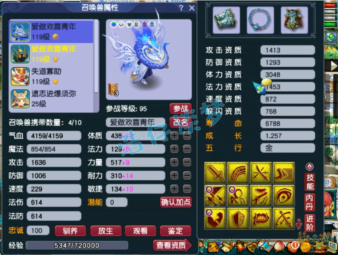还有一只8技能净台配速血宠日游神,难度任务用的宝宝。