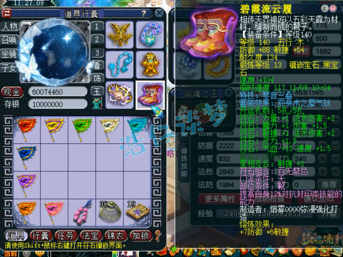 140级带琴音三叠的蜃气妖套鞋子,打了13锻黑宝石。