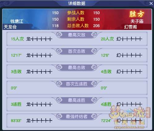 从胜者组的比赛情况来看,被称为“三幻神”的【幻雪阁】、【折戟沉沙】、【天龙会】在帮派实力、队伍实力上有着“断崖”级别的领先。即便是汇聚各方力量的【′天天开心°】、【天堂之令】、【ッ幽水雅阁ッ】,也很难在其手中讨到便宜。