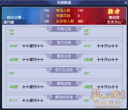 从比赛情况来看,被誉为“三幻神”的【幻雪阁】、【折戟沉沙】、【天龙会】发挥稳定,轻松击败对手晋级;身为后起之秀的【′天天开心°】、【天堂之令】、【ッ幽水雅阁ッ】凭借较为领先的战术思路,挺进胜者组;【逍遥⊙永恒】、【不再遗憾】则是靠着强大的组织能力,成功拿下比赛。